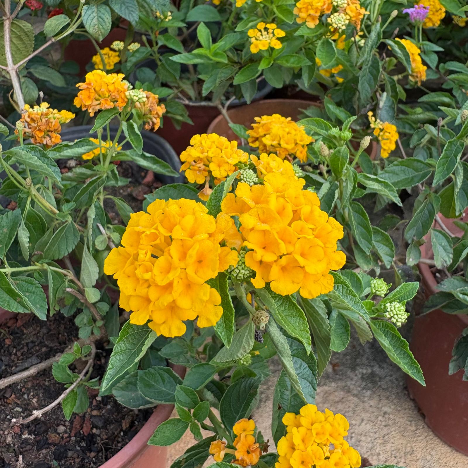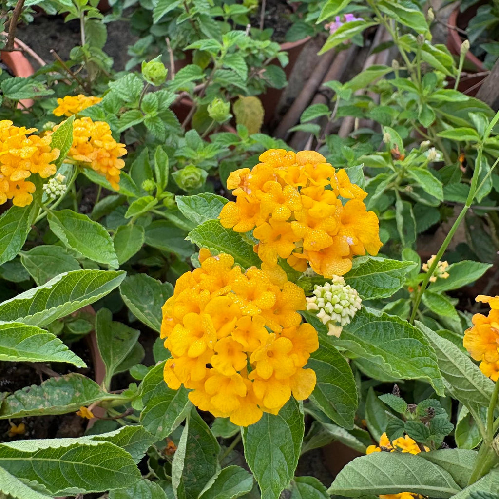 Lantana is a genus of about 150 species of perennial flowering plants in the verbena family, Verbenaceae. They are native to tropical regions of the Americas and Africa but exist as an introduced species in numerous areas, especially in the Australian-Pacific region, South and Northeastern part of India. Many varieties have been bred for different flower colours, from whites and cool yellows to vibrant red and orange. These plants are very versatile, and depending on the type, can be used for hedging, hanging baskets, ground cover, and ornamentals.