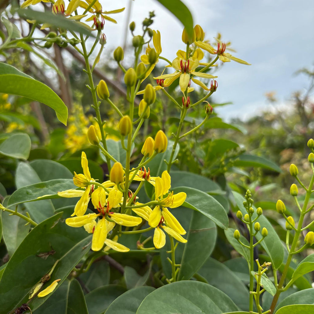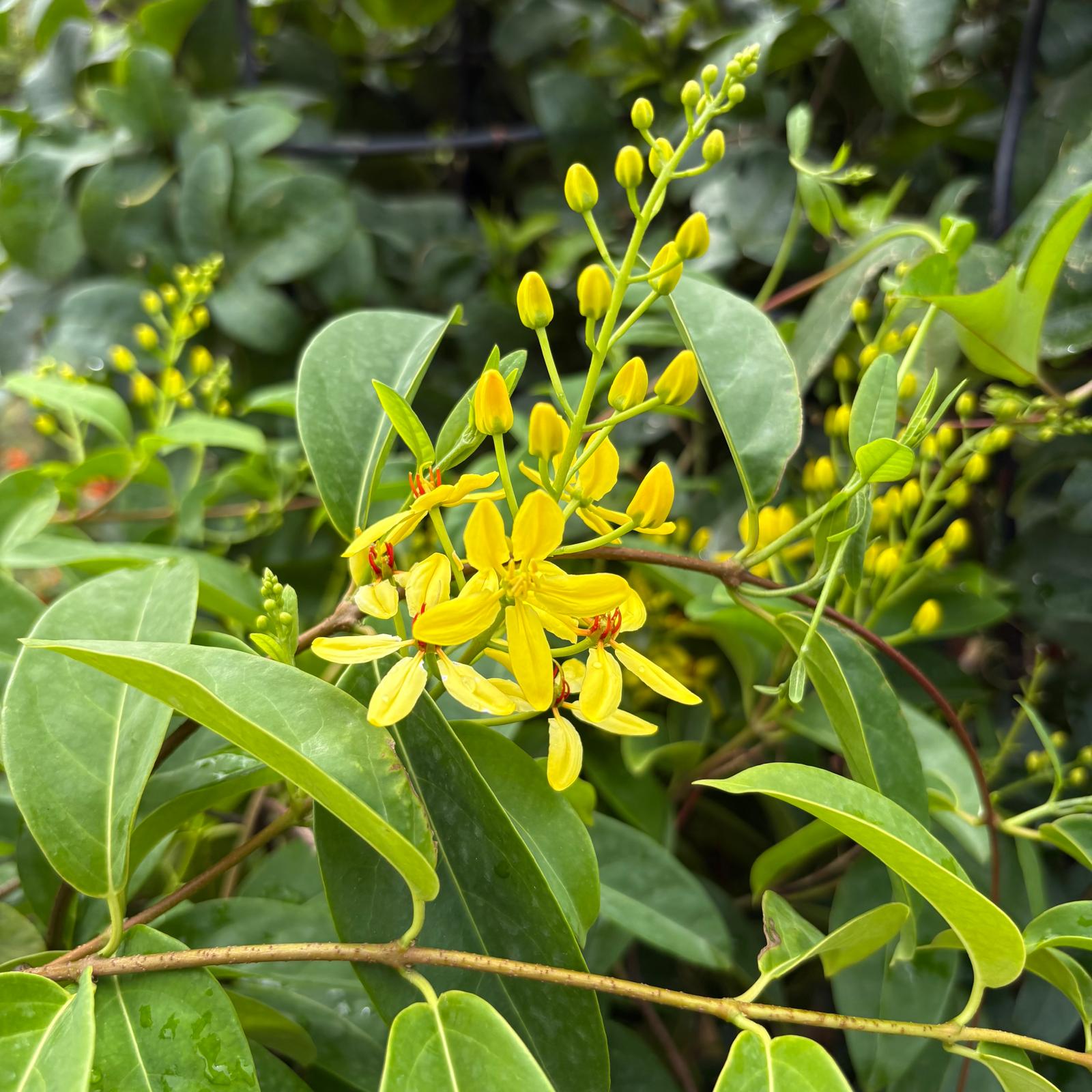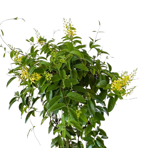 Tristellateia australasiae is a stunning climbing shrub celebrated for its abundant, bright yellow, star-shaped flowers. It's a popular choice for adding a tropical touch to gardens and landscapes, provided it has adequate support and well-drained soil. The sheer quantity of golden-yellow flowers makes it a standout plant when in bloom.