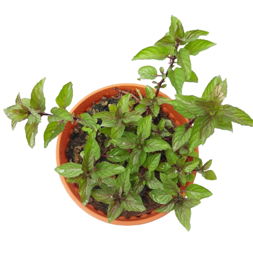 Mentha × piperita f. citrata 'Chocolate' or Chocolate Mint very similar to spearmint but with more menthol it has a distinctive flavor and smell. Most commonly grown as a culinary herb and/or ground cover. It's well knew for their attractive brownish red stems ad spear shaped rich green leaves.
